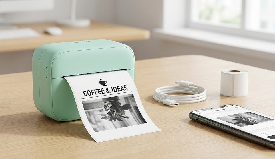 Imprima suas ideias instantaneamente. Sem tinta, sem fios, pura criatividade na palma da mão.